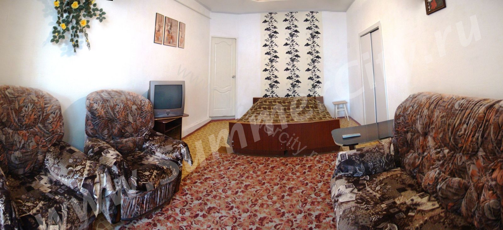 1-комнатная квартира в парке г. Кисловодска возле санатория "Луч" напротив нарзанной галереи. Вход отдельный с улицы, в комнате имеется двуспальная, кровать, диван, телевизор, на кухне газовая плита, холодильник, все необходимые кухонные принадлежности. Вода круглосуточно. Чисто, уютно все удобства, постельные принадлежности.