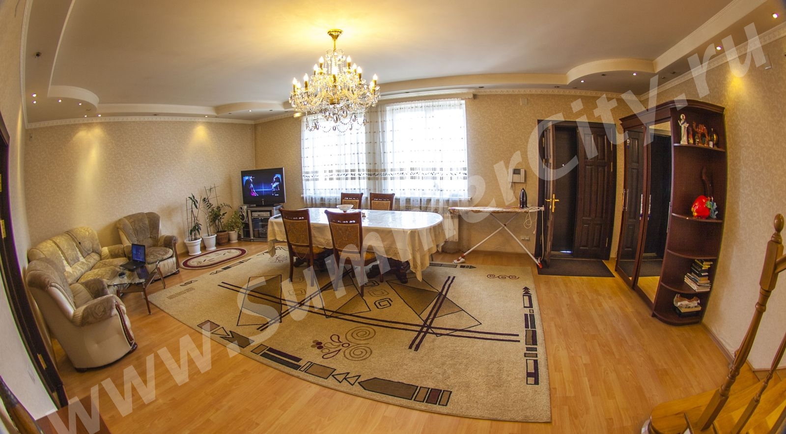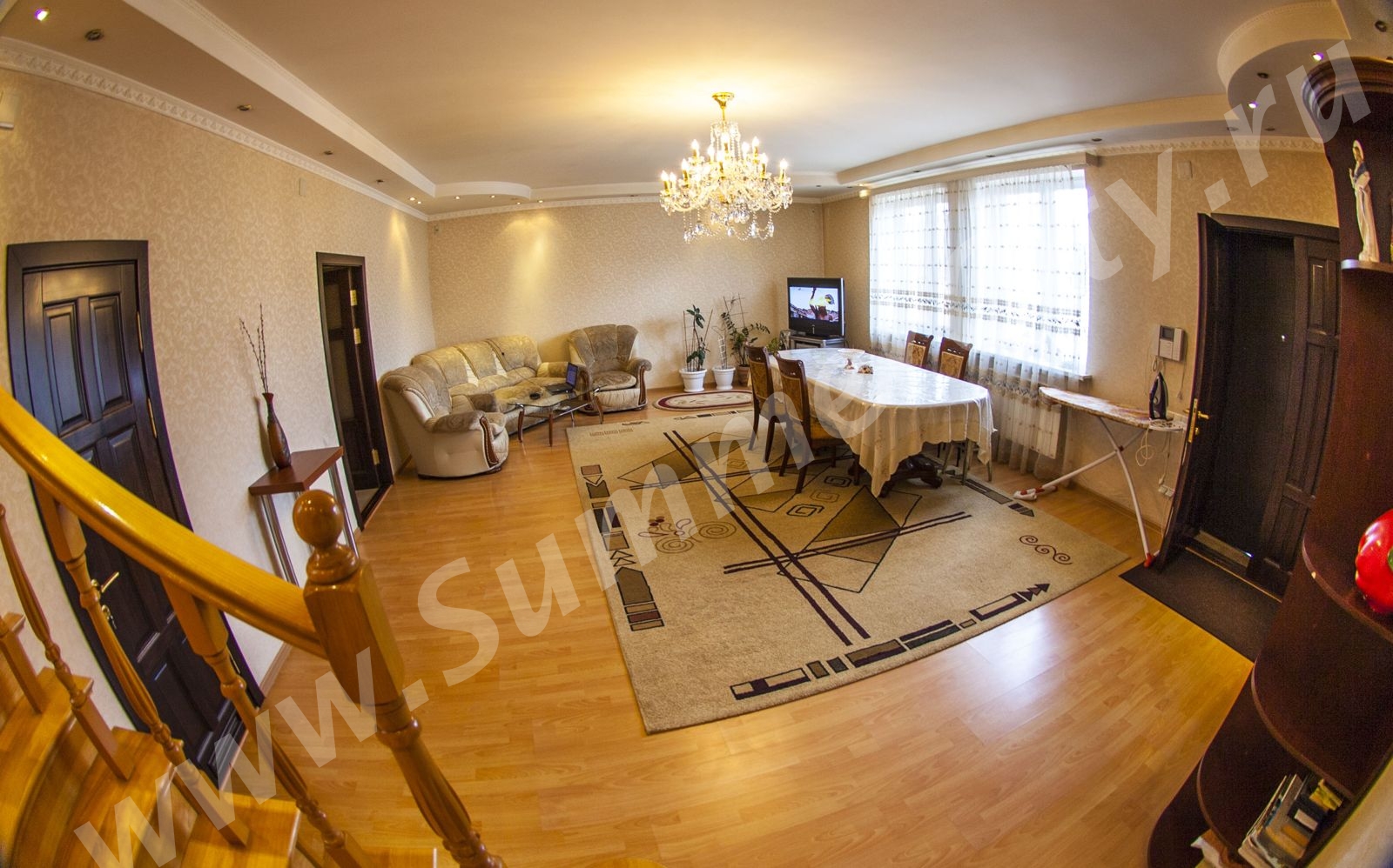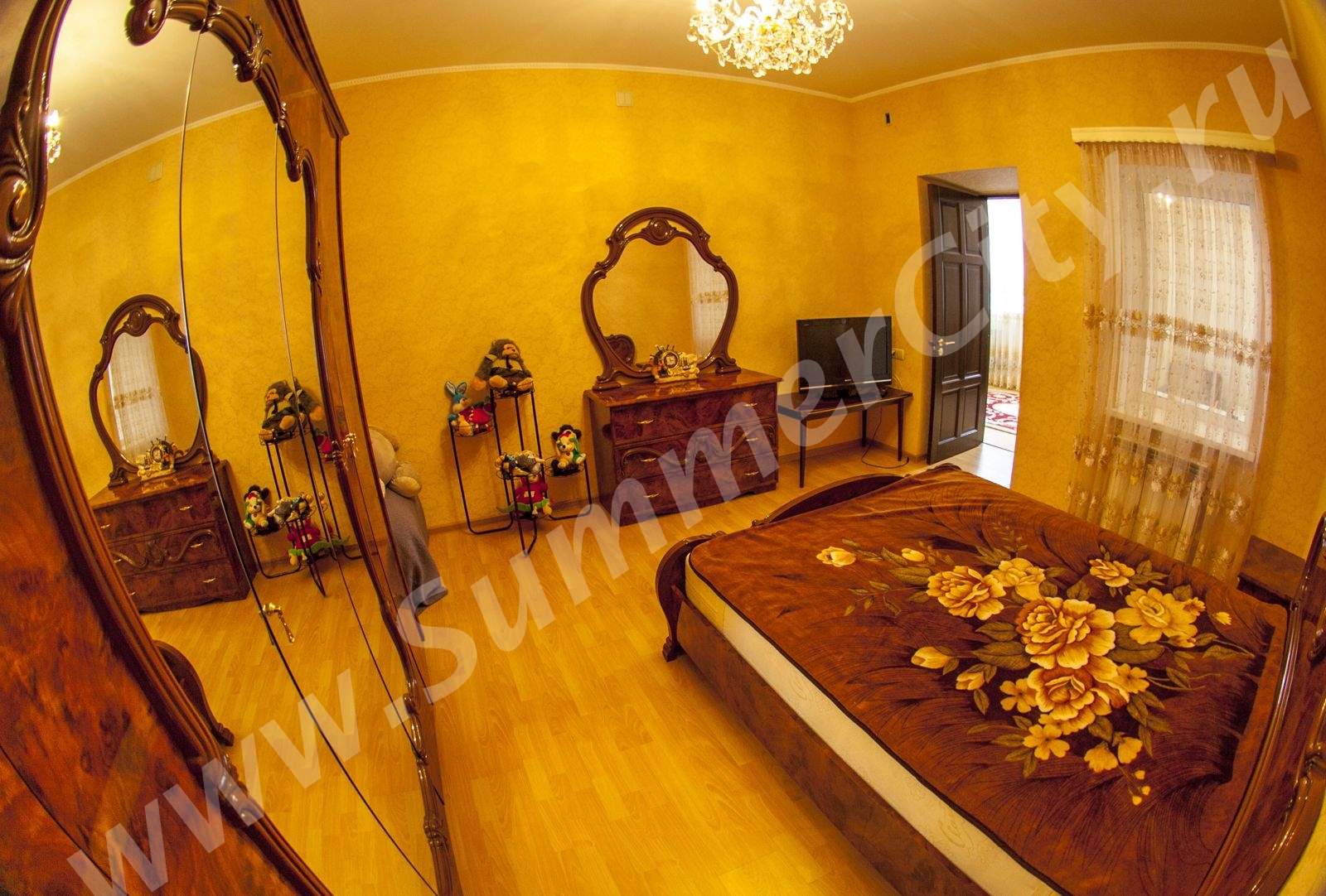 Спальные места: 2 двуспальные кровати, 2 двуспальных дивана и 2 односпальных кресло-кровати.