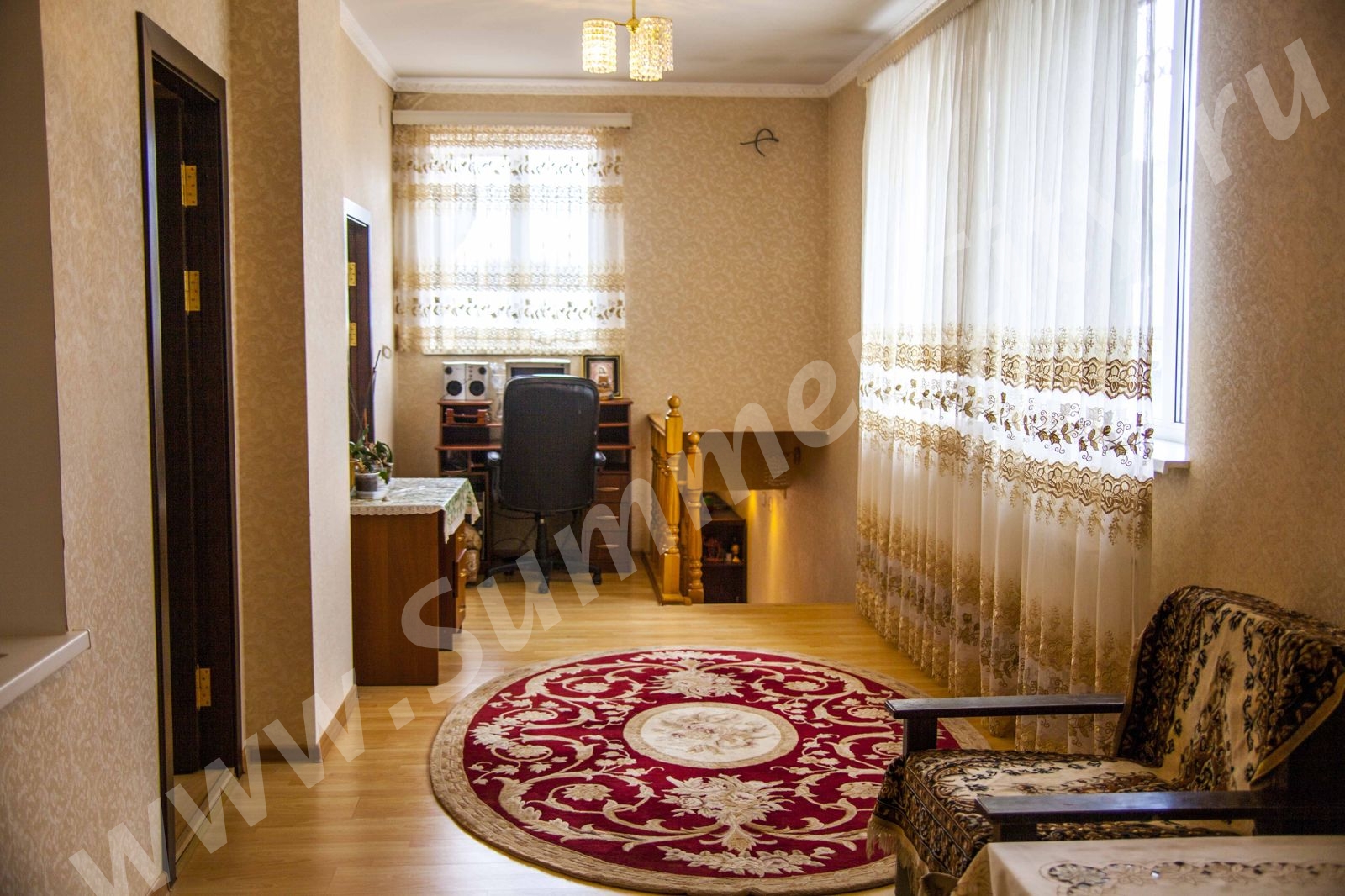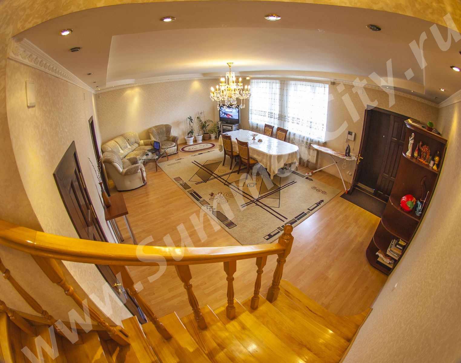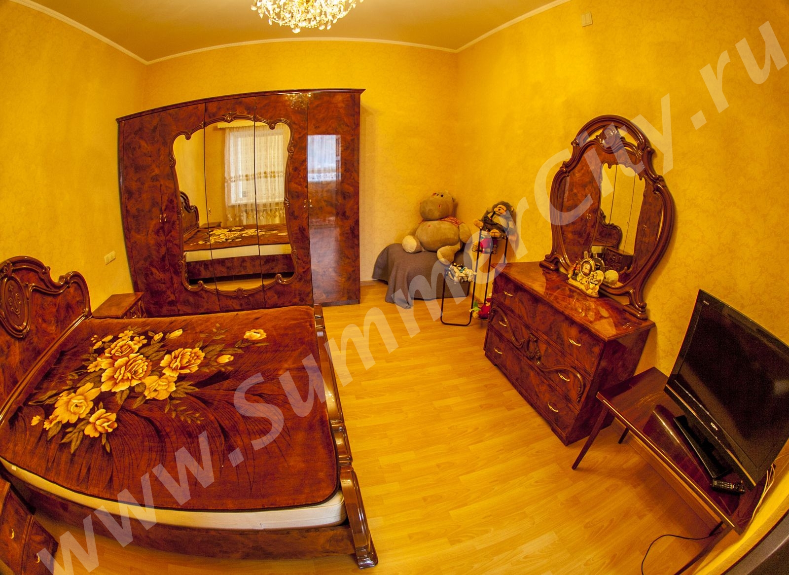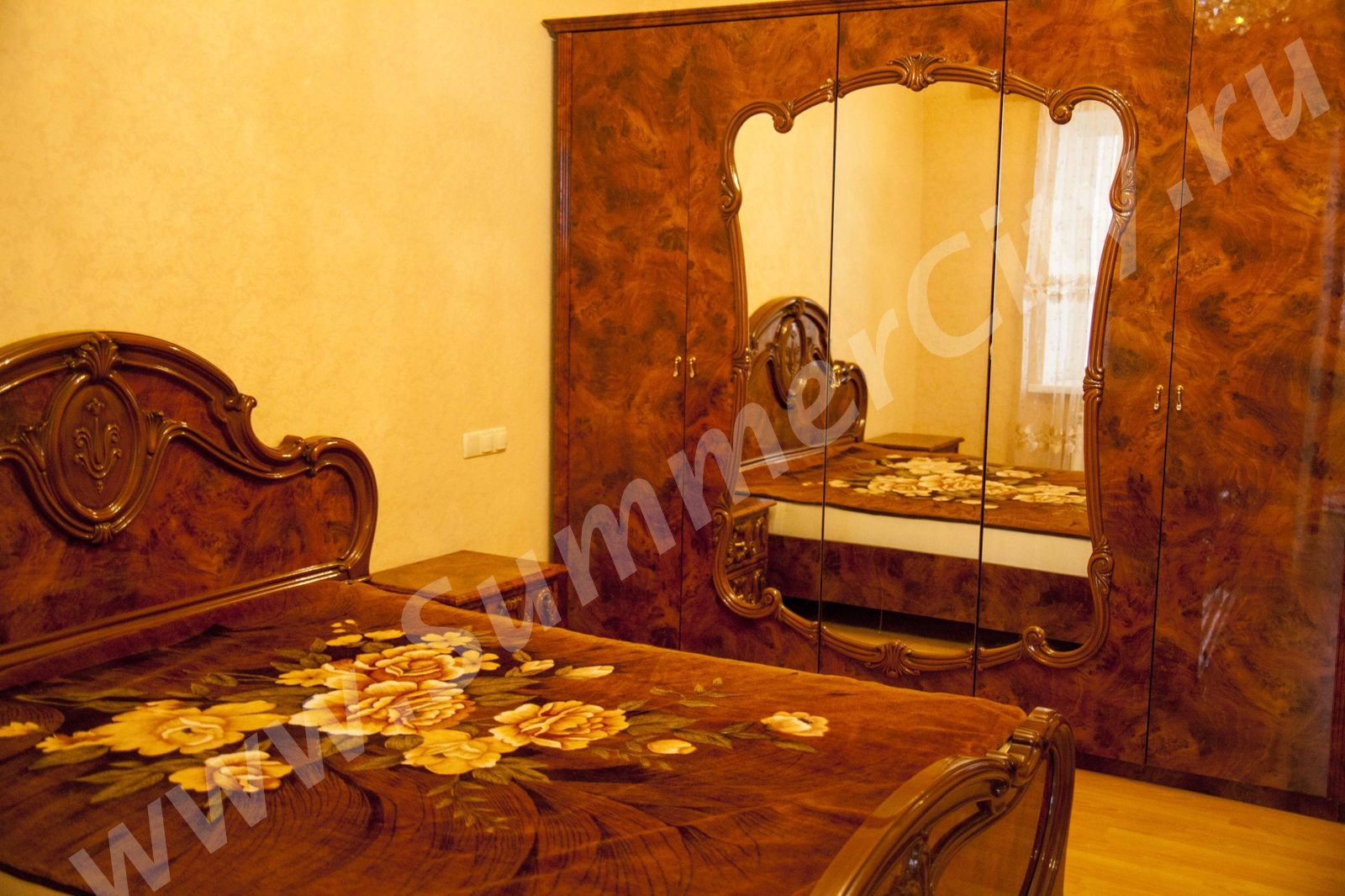 Спальные места: 2 двуспальные кровати, 2 двуспальных дивана и 2 односпальных кресло-кровати.