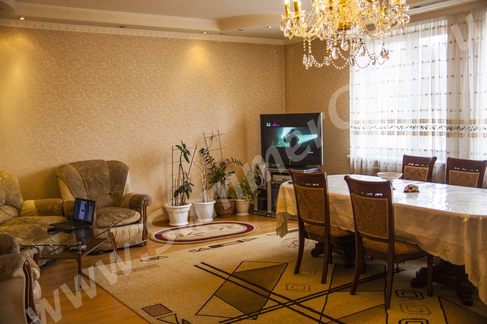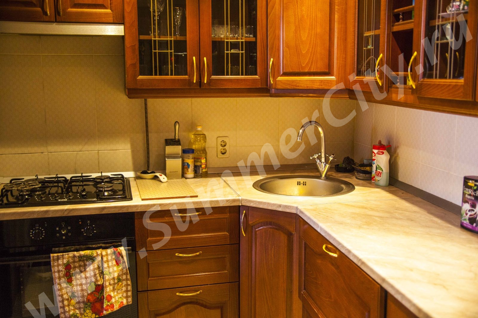 Техника: 3 телевизора, wi-fi интернет, стиральная машина, фен, микроволновая печь, холодильник, электрический чайник, плита газовая четырех конфорочная с духовкой.