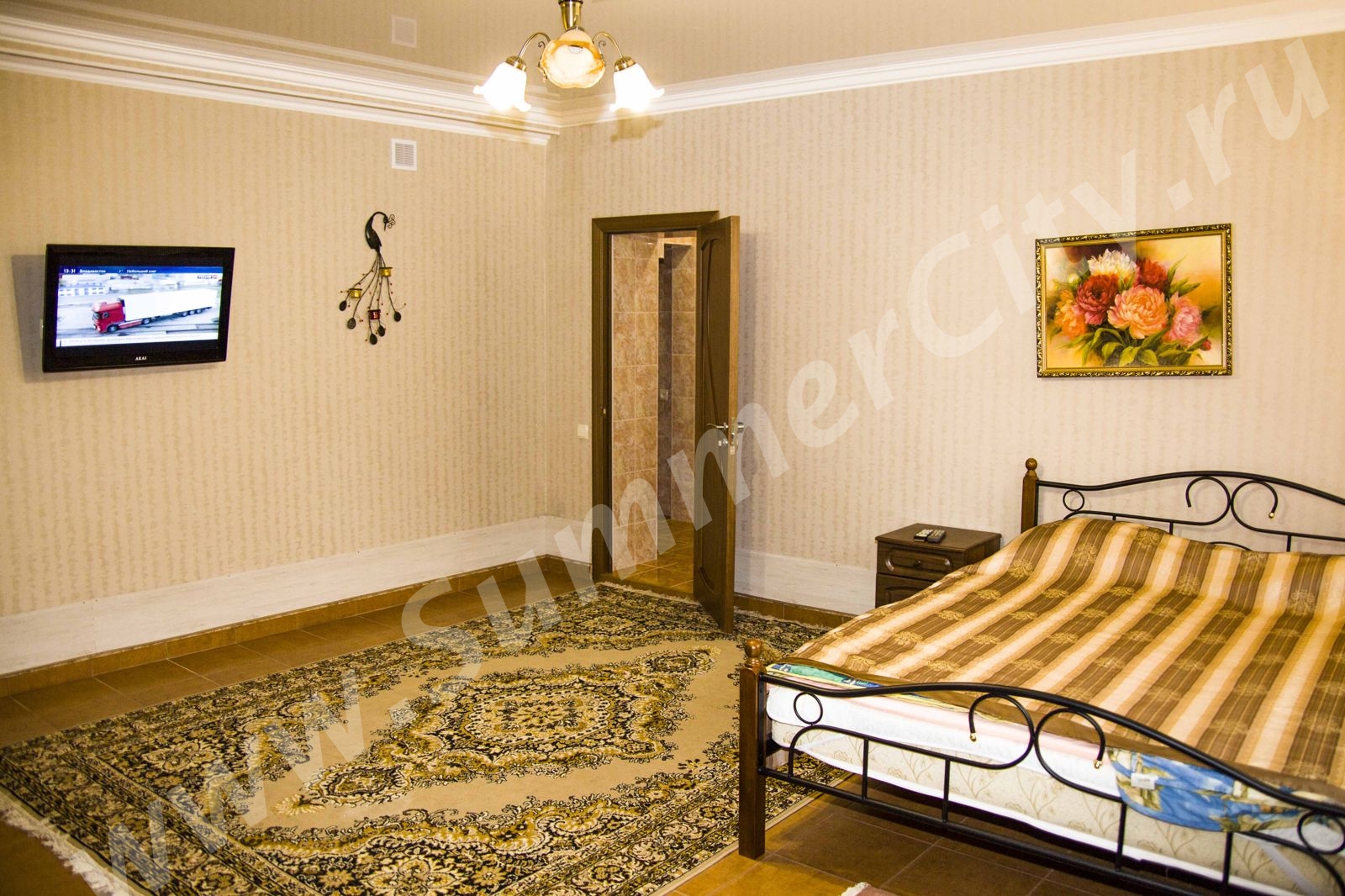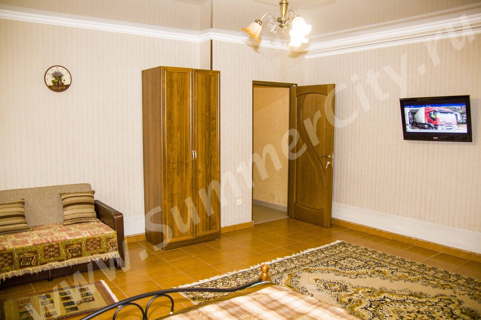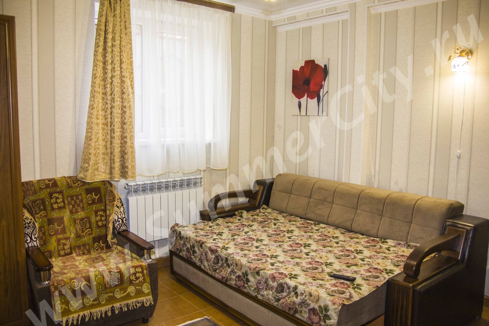 Спальные места: Двуспальная кровать, 2 двуспальных дивана и кресло-кровать.
