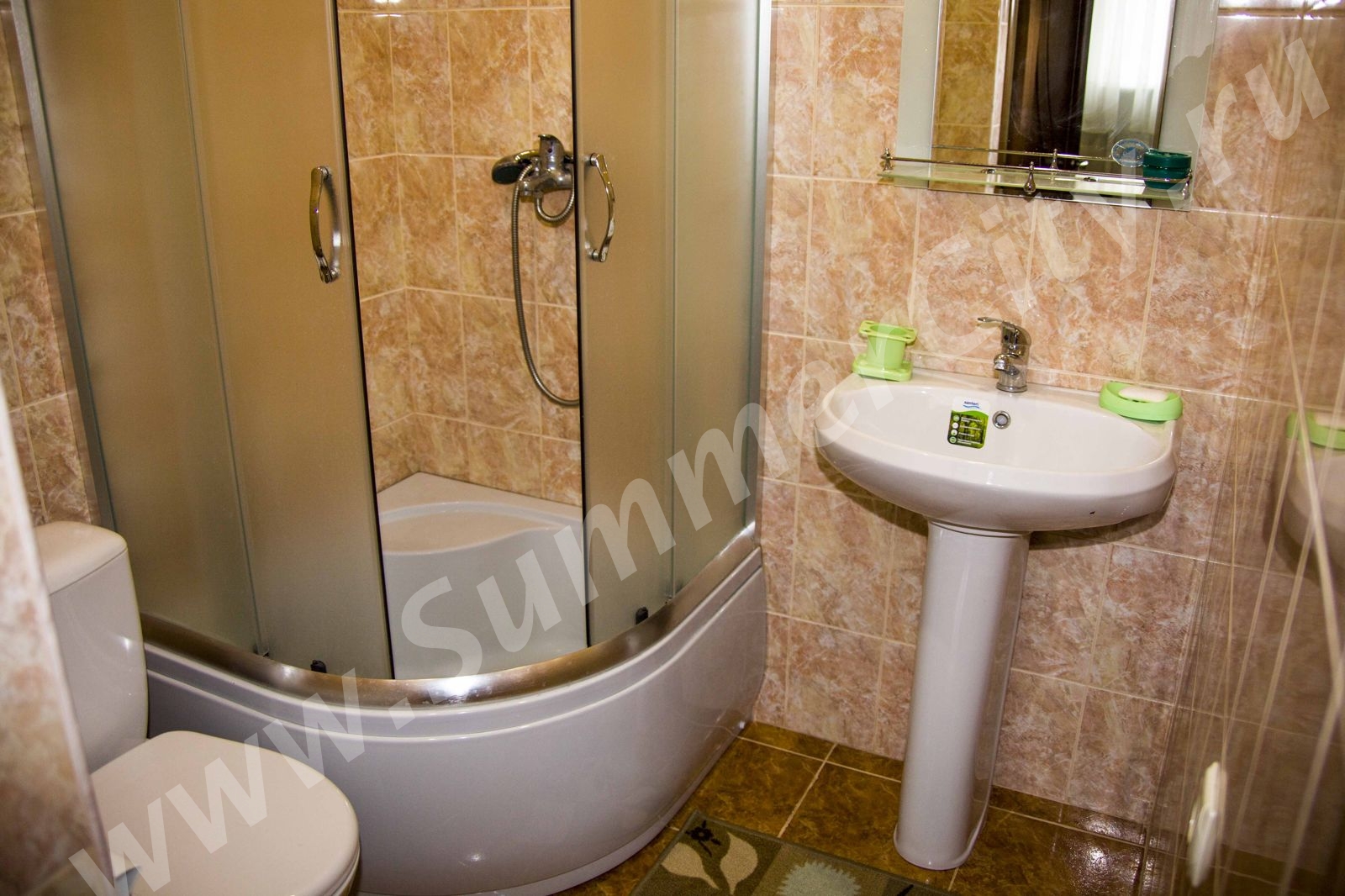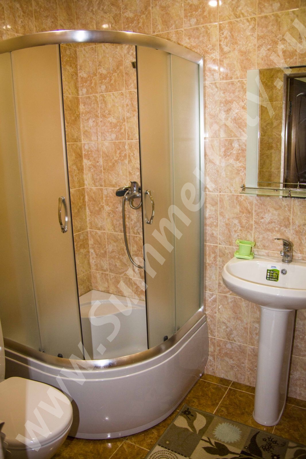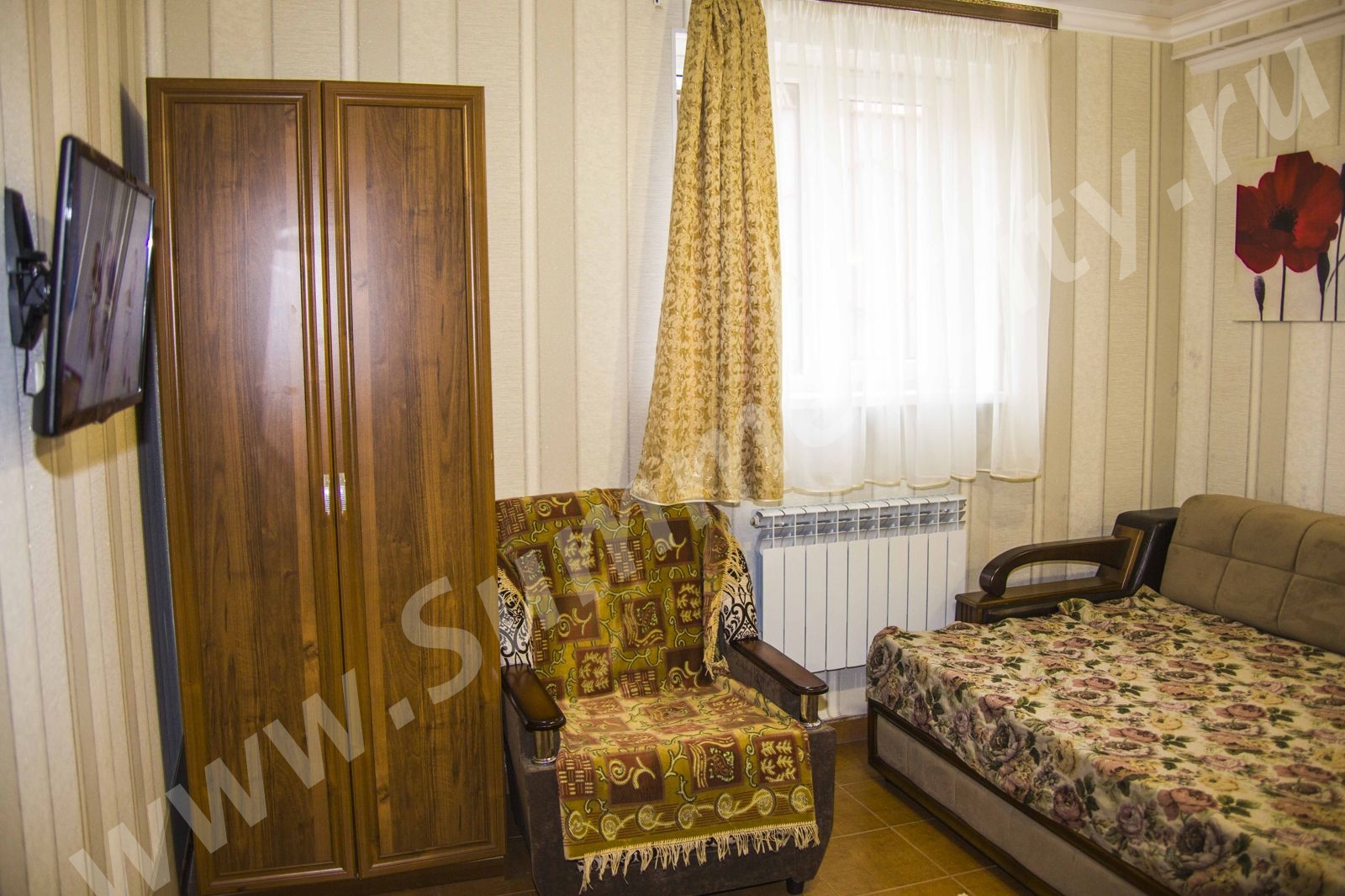 Техника: 2 LCD телевизора, wi-fi интернет, стиральная машина, микроволновая печь, холодильник, электрический чайник, утюг, плита встроенная двух конфорочная.