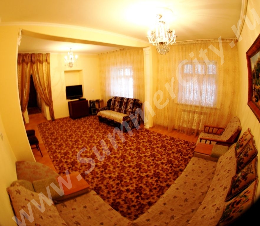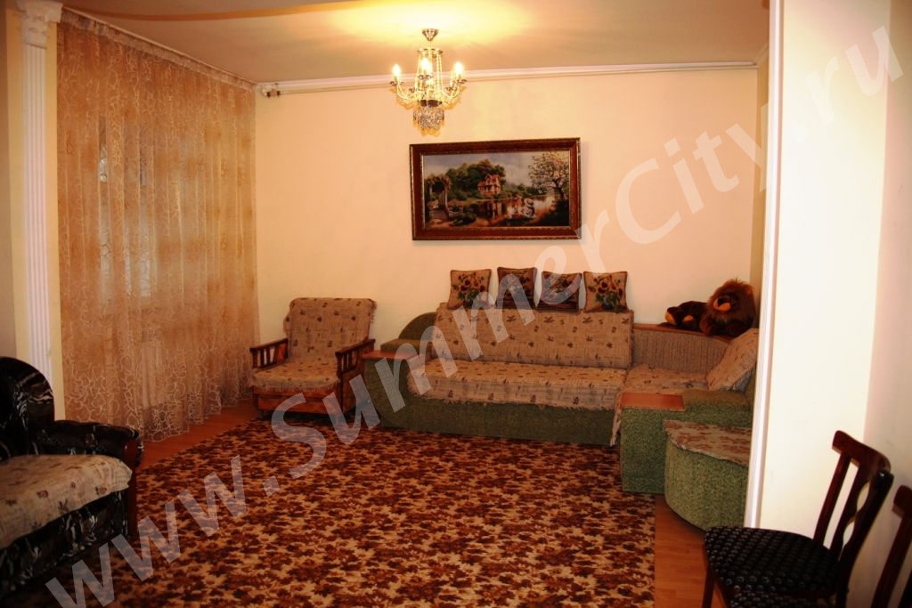 Спальные места: 3 двуспальные кровати, 5 двуспальных диванов и кресло-кровать.