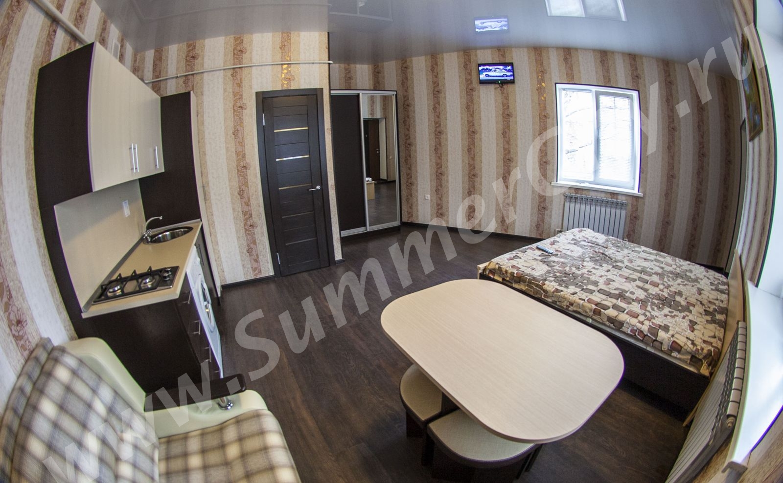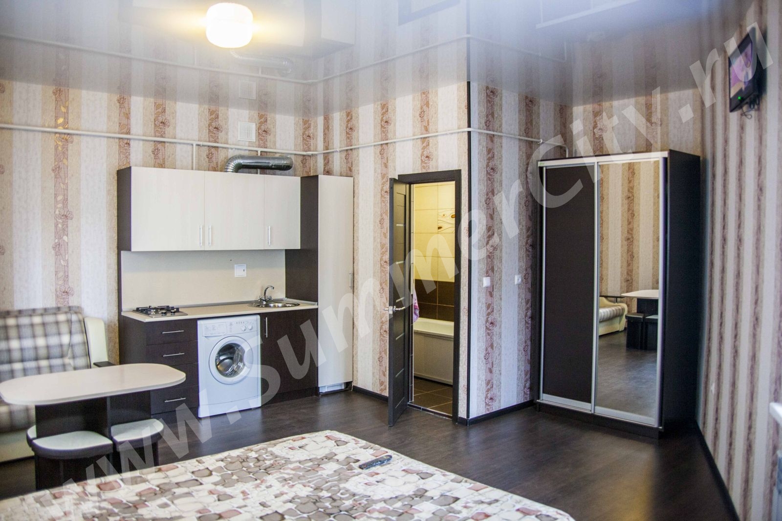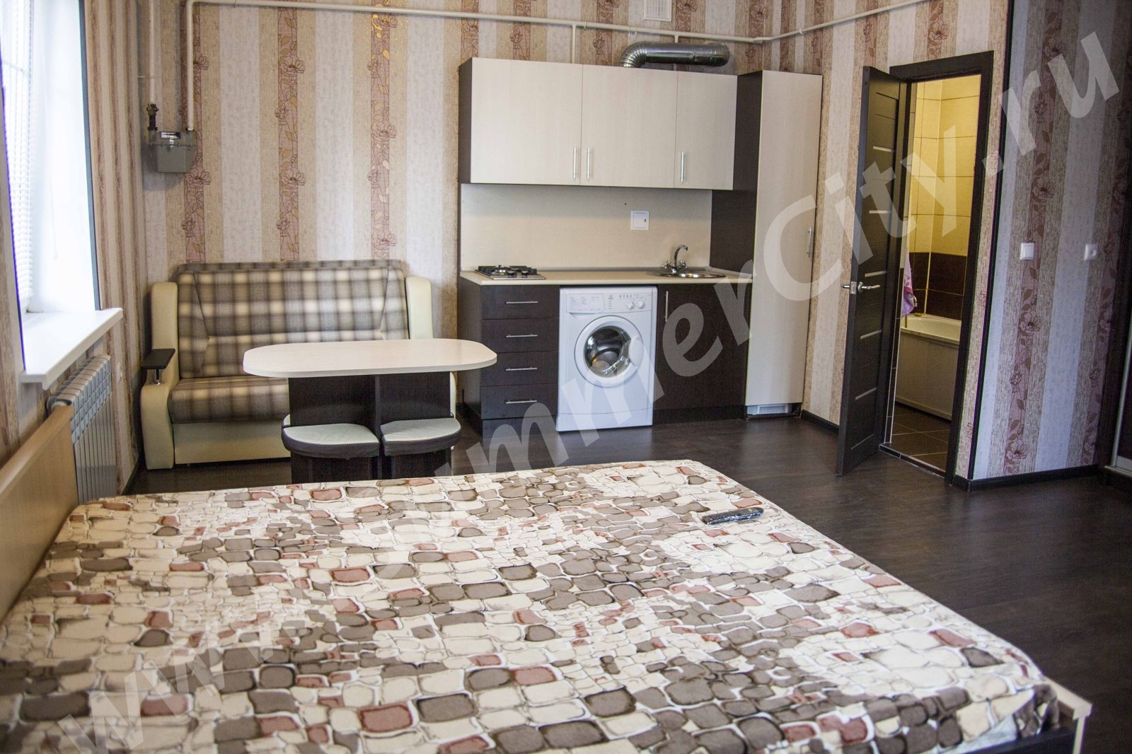 Новая однокомнатная студия в новом одноэтажном доме через дорогу от "Колоннады", "Нарзанной галереи" по адресу проспект Мира д. 4, новый хороший ремонт, новая мебель и техника, индивидуальное отопление и горячая вода стоит двухконтурный котел, парковочное место рядом с домом или рядом платная стоянка сан. "Колос" и столовая при прокуратуре.