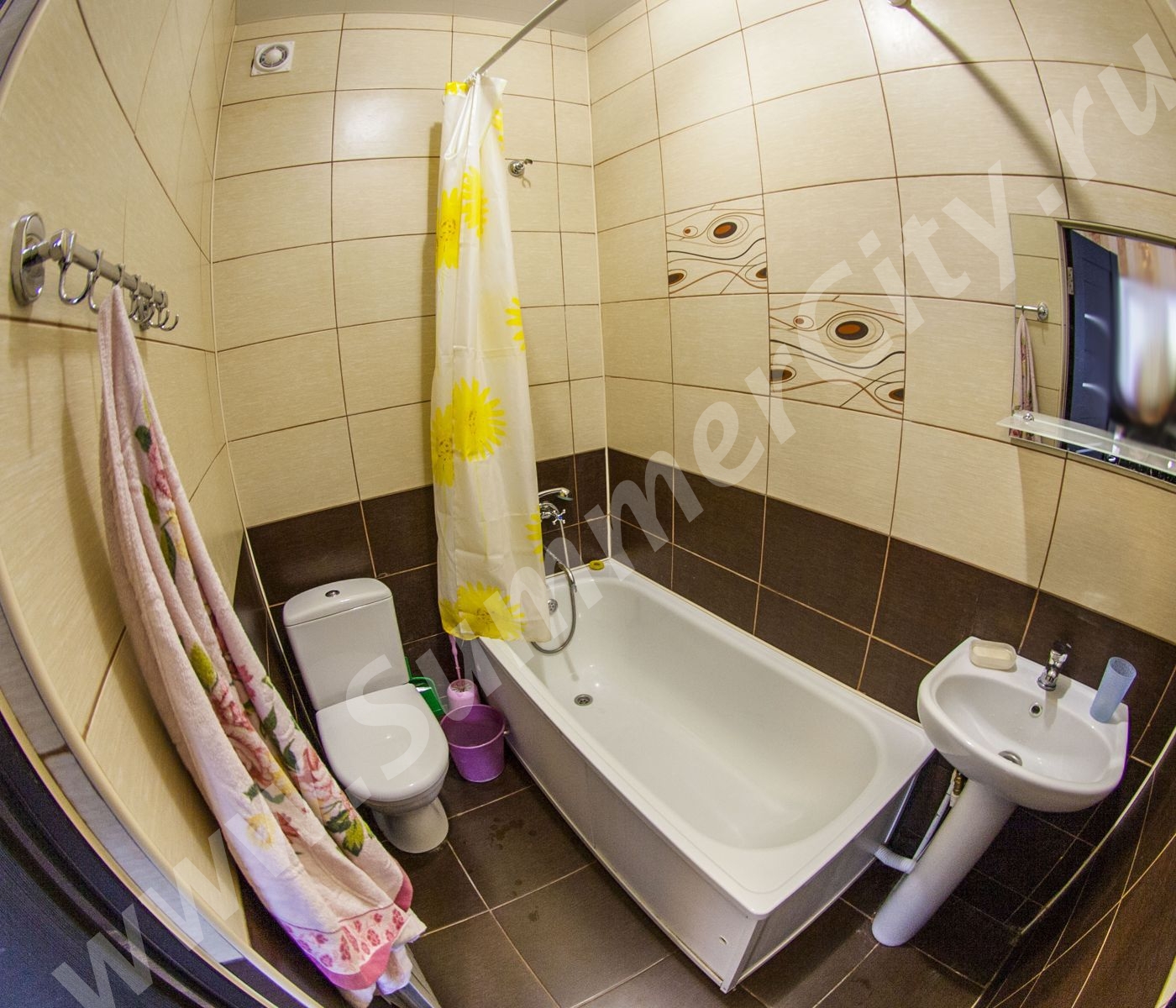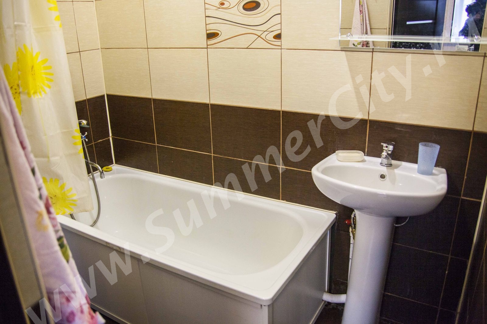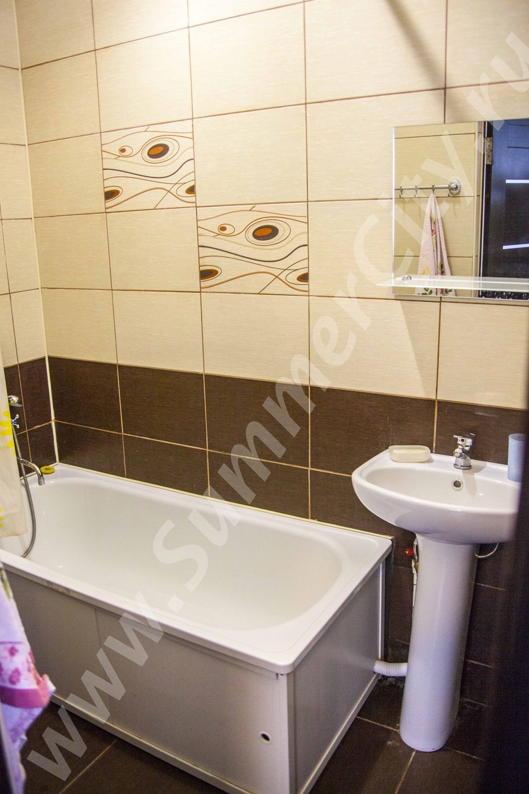Техника: LCD телевизор, стиральная машина, микроволновая печь, холодильник, электрический чайник, плита газовая двухконфорочная встроенная.